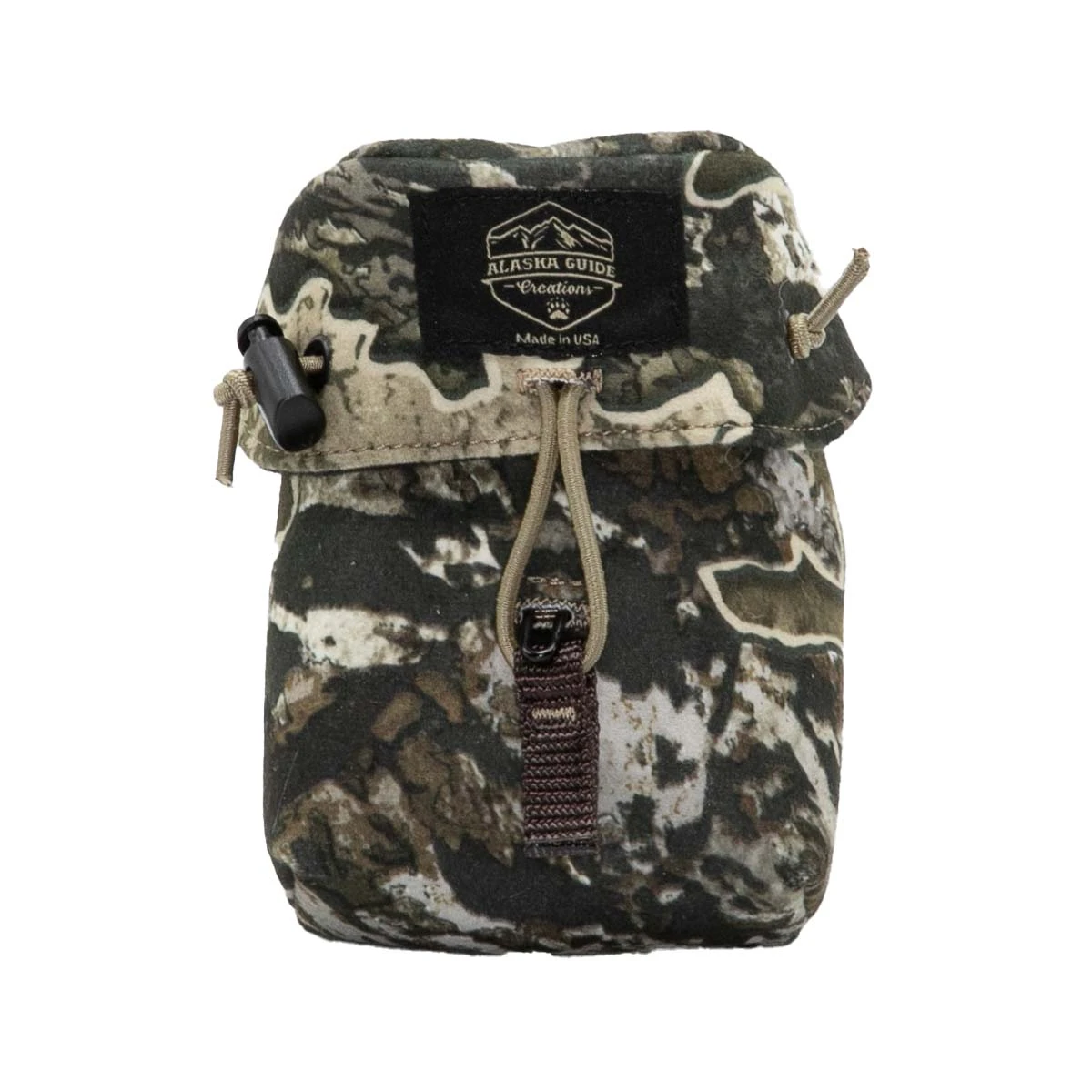 The Alaska Guide Creations Rangefinder Pouch is a must have item for all. The RF Pouch not only attaches to all AGC packs, but also to any other chest harness, backpack, or everyday belt. It is designed specifically to carry handheld, vertical style rangefinders. Two micro-cord connection points are provided. This allows the 1/16″ bungee tether (included) to be tied at the location desired for right-handed or left-handed use. The hook and bungee closure allows for quick, silent, one-handed use. Following other Alaska Guide Creations products, the RF Pouch is made in USA.