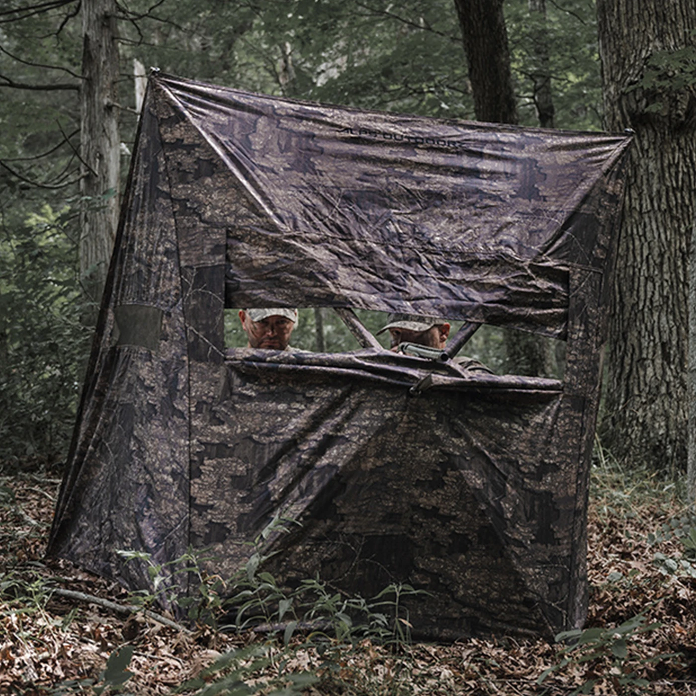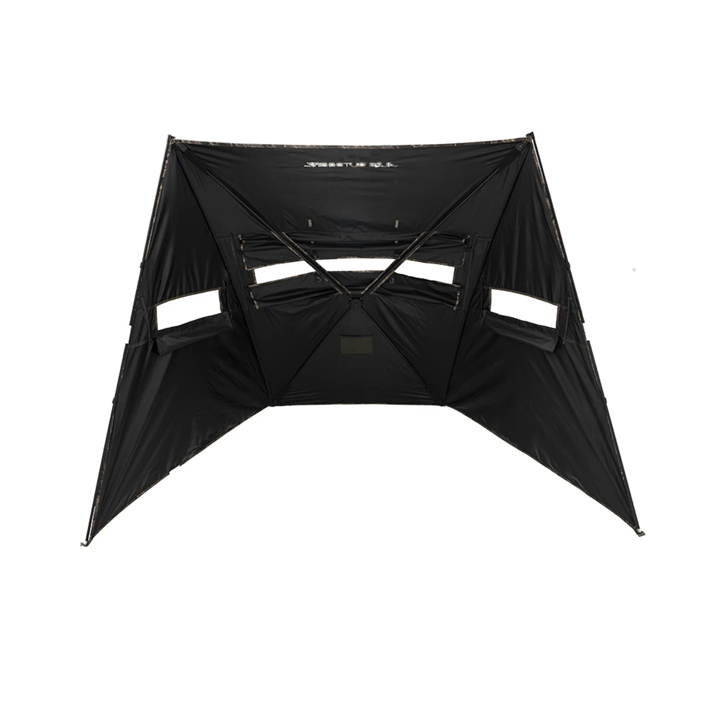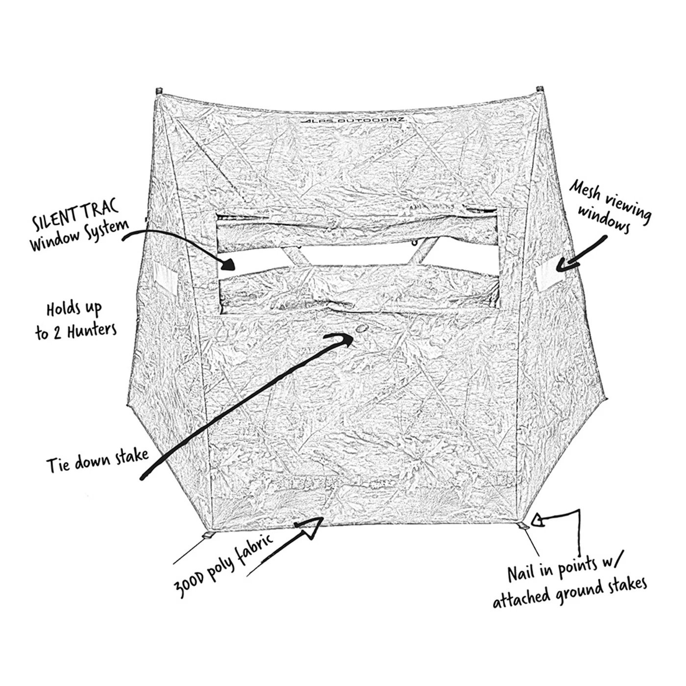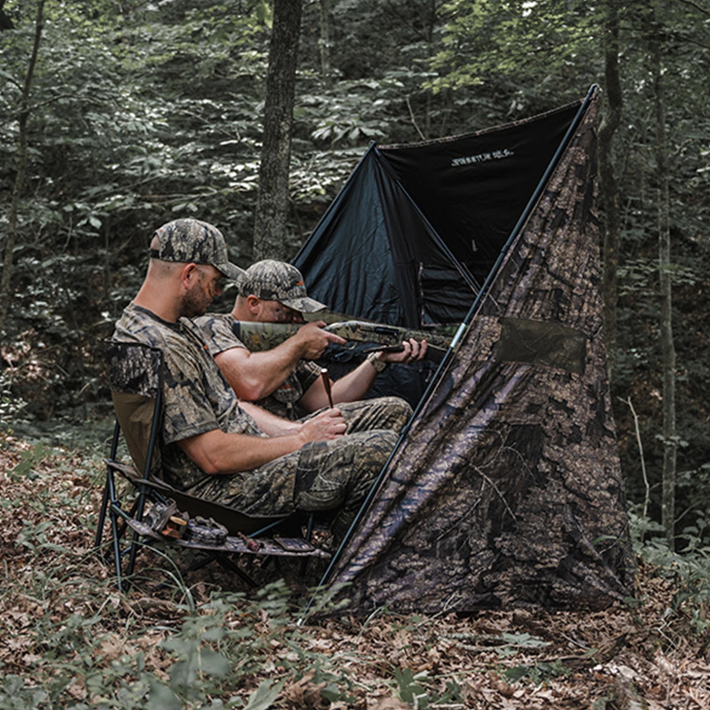 The Dash Panel Blind is an innovative solution for on-the-move ground hunters. Developed primarily for turkey hunters but equally suitable for a wide variety of hunting applications. The Dash Panel Blind is a hybrid system that combines traditional pop-up blinds’ key benefits with the high mobility and lightweight of traditional panel blinds. The three-panel construction offers generous three directions of ground-level concealment for one to two hunters. This free-standing blind utilizes a single-hub design for compact, on-the-move storage, quick deployment, and stability in challenging conditions, making it ideal for run n’ gun style hunting or establishing morning, evening, or all-day ambush points to meet changing game patterns. To better accommodate the needs of a rifle, shotgun, or compound/crossbow shooters, the Dash Panel Blind features a SILENT-TRAC® window system across the front panel. Top and bottom window panels allow hunters to independently and silently adjust the window panels to achieve the optimal balance of concealment and shooting function. Mesh windows on each side skirt can also be raised or lowered as needed. The blind comes with attached ground stakes, an interior mesh pocket, and a convenient shoulder carry bag.