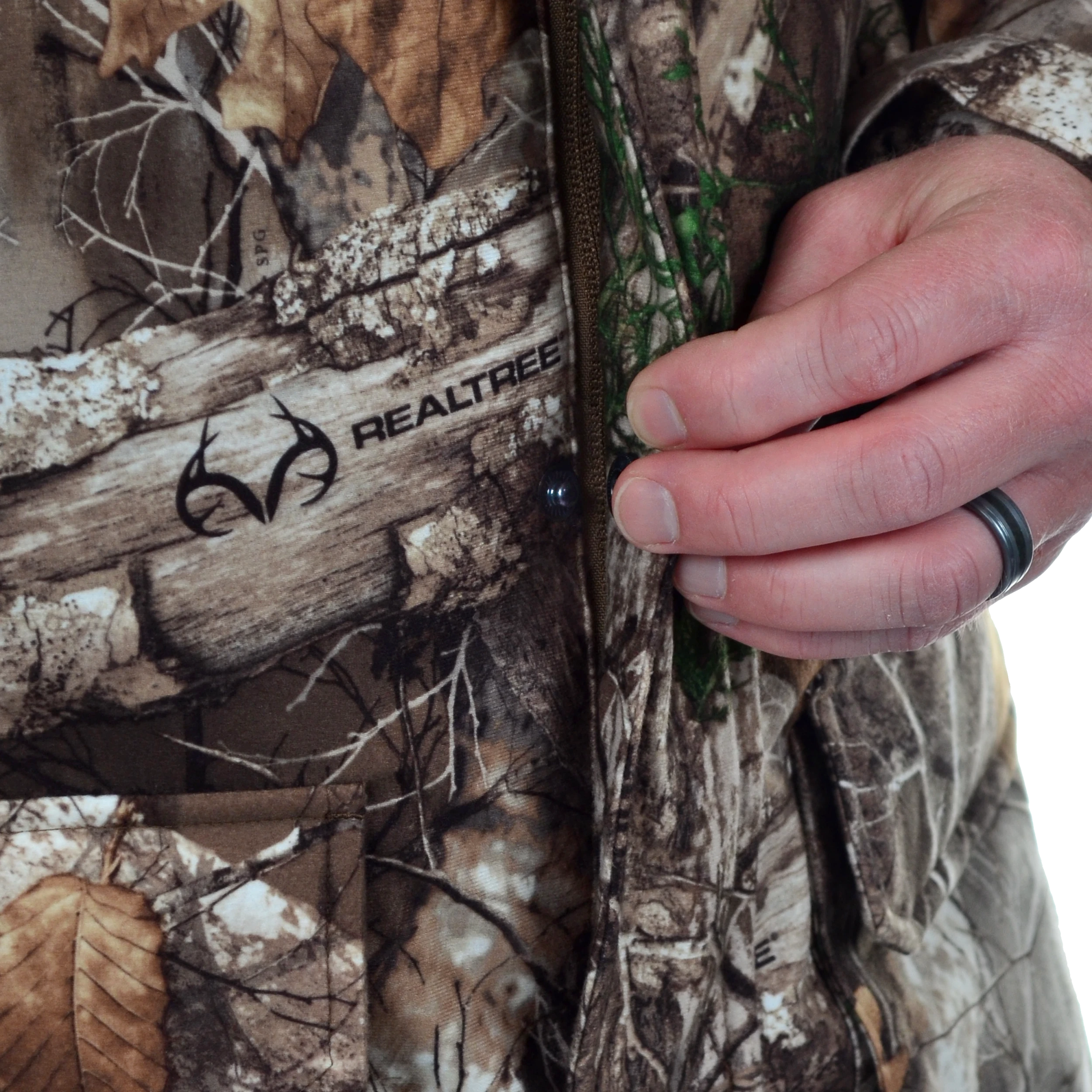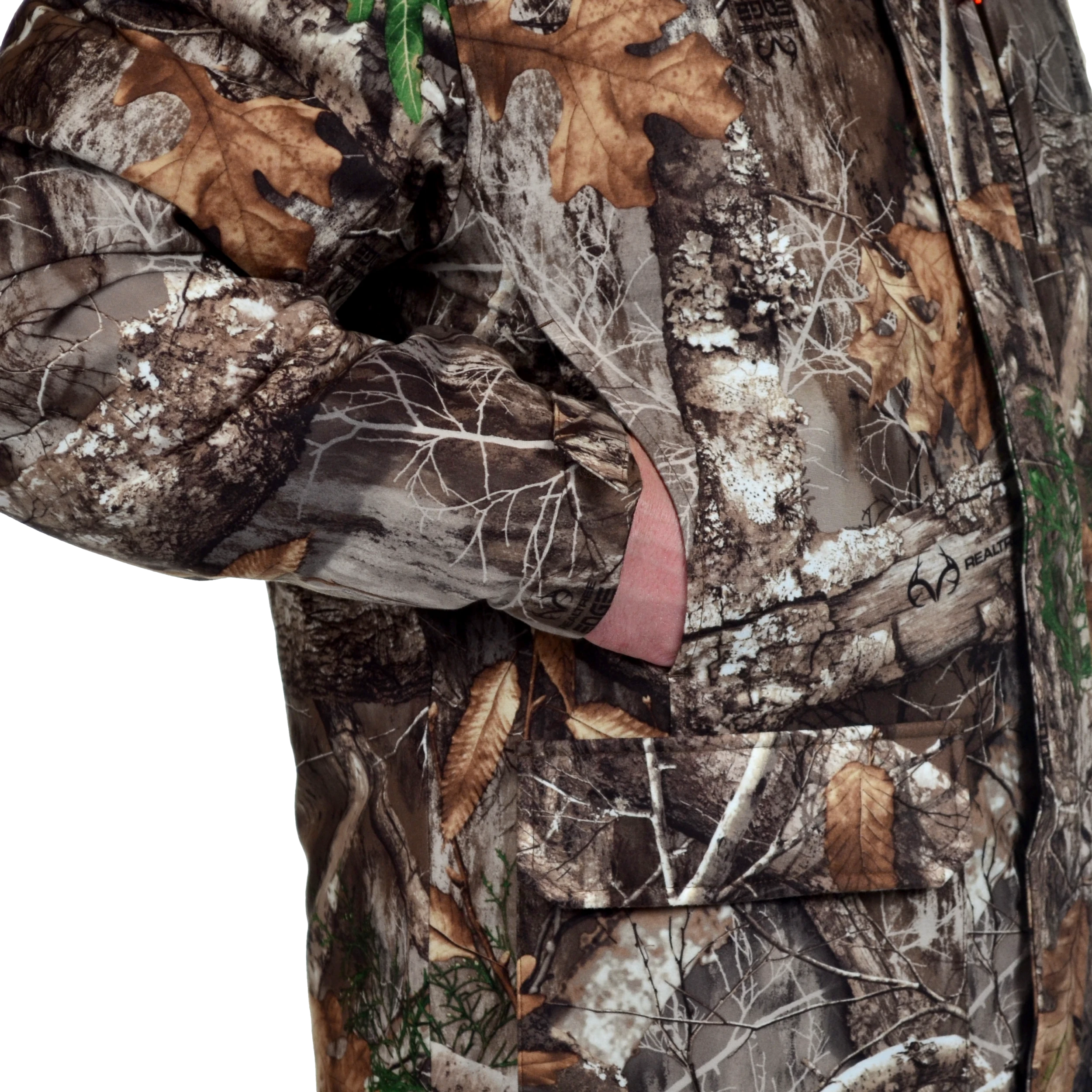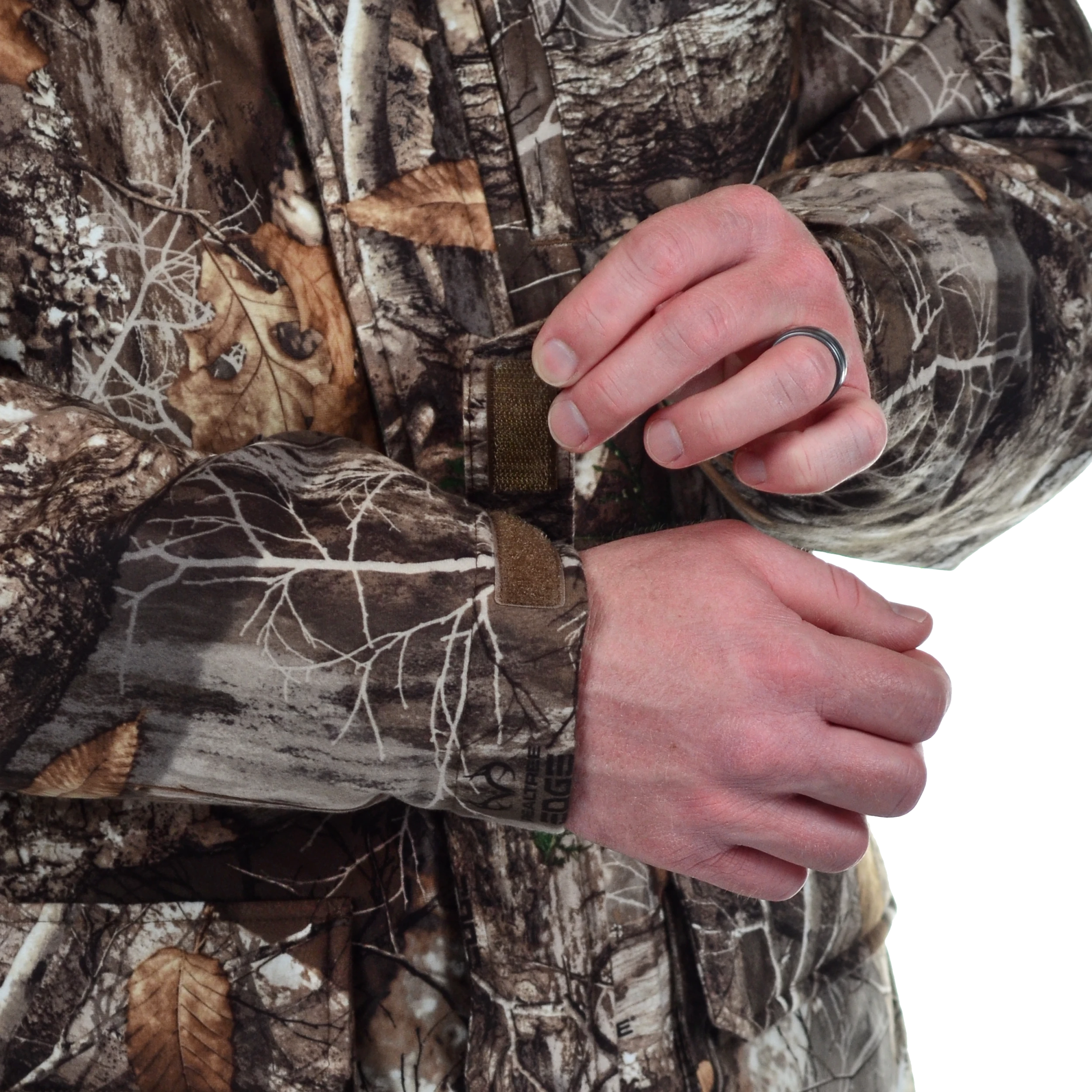 Insulated waterproof, windproof, breathable outerwear with Scent-Factor and Rain-Factor Waterproof Technologies.