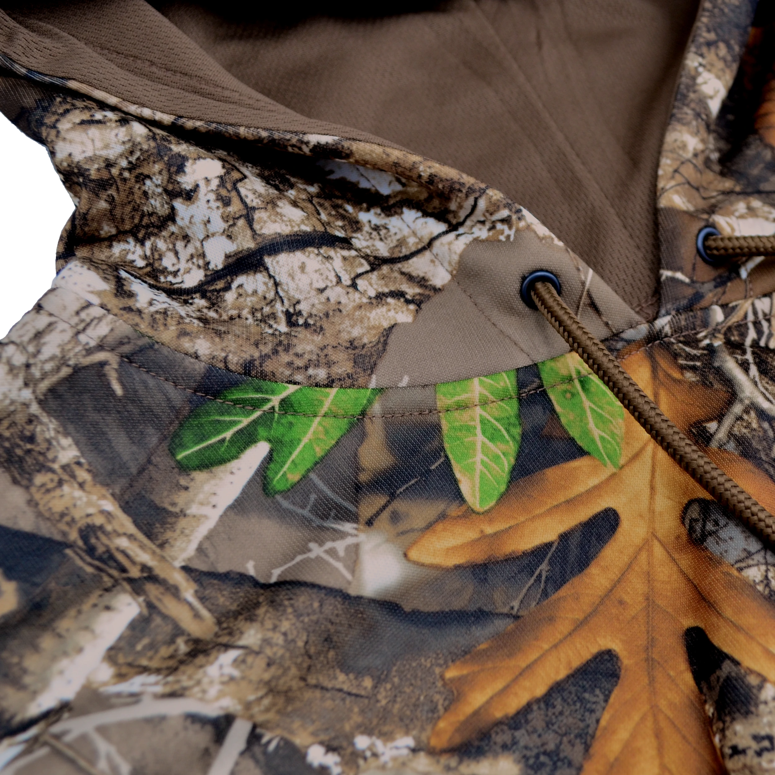 Soft polyester fleece fabric with Scent-Factor Technology can be worn as a layer in colder weather or outerwear on chilly mornings.