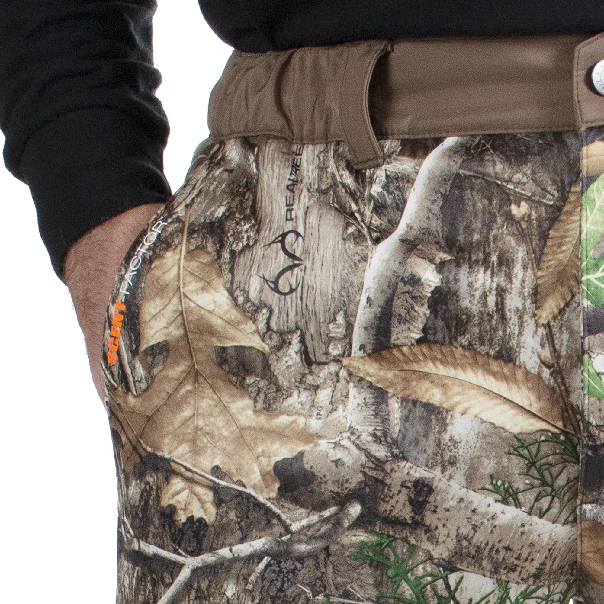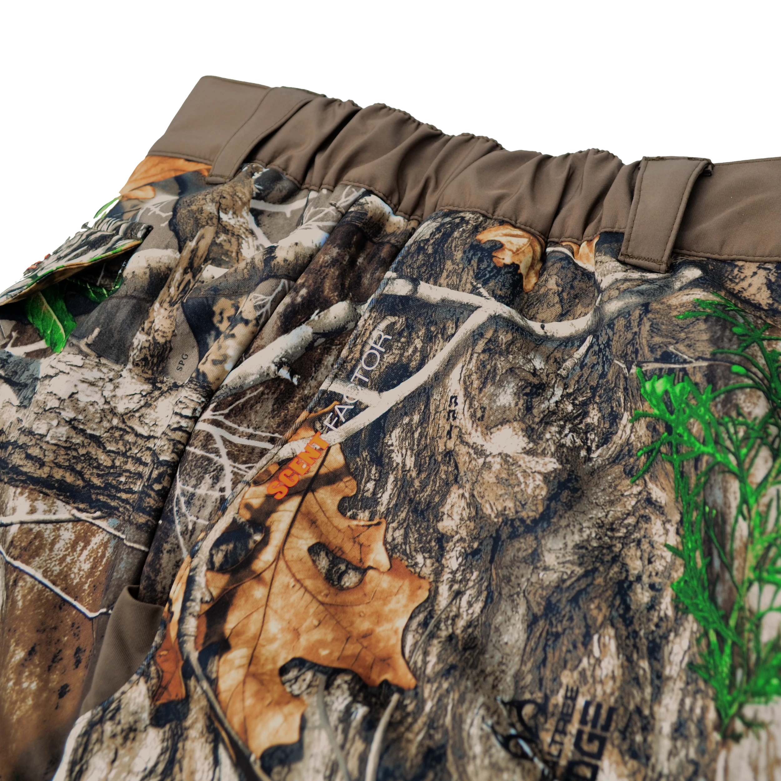 Active 2-Ply Fabric with Patterned Fleece Interior is extremely quiet with Scent-Factor and Rain-Factor Water Repellent Technology.