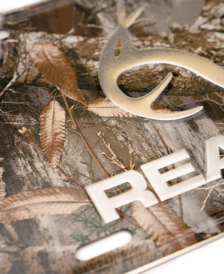 This decorative Realtree Antler license plate measures 12″ x 6″ and is made of high quality, sturdy aluminum metal. This Fashion Plate has the Realtree Antler Logo in Silver on a EDGE Camo Background to show off your love of the outdoors. It has pre-drilled holes ready for immediate mounting. This sign is a great way to decorate your favorite hang out spot, game room, garage, man cave, kitchen…etc. The decorating possibilities are limitless!