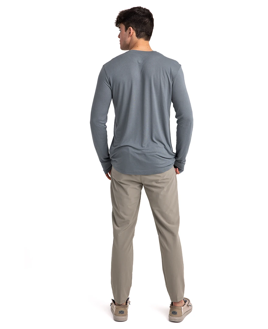 The bamboo, long sleeve shirt features a crew neck and thumb holes, adding to the comfort factor making is dual purpose for your outdoor adventure or just working around the house. The flex fabric allows for even more freedom of movement, while the 70% bamboo and 30% polyester blend provide durability and longevity.