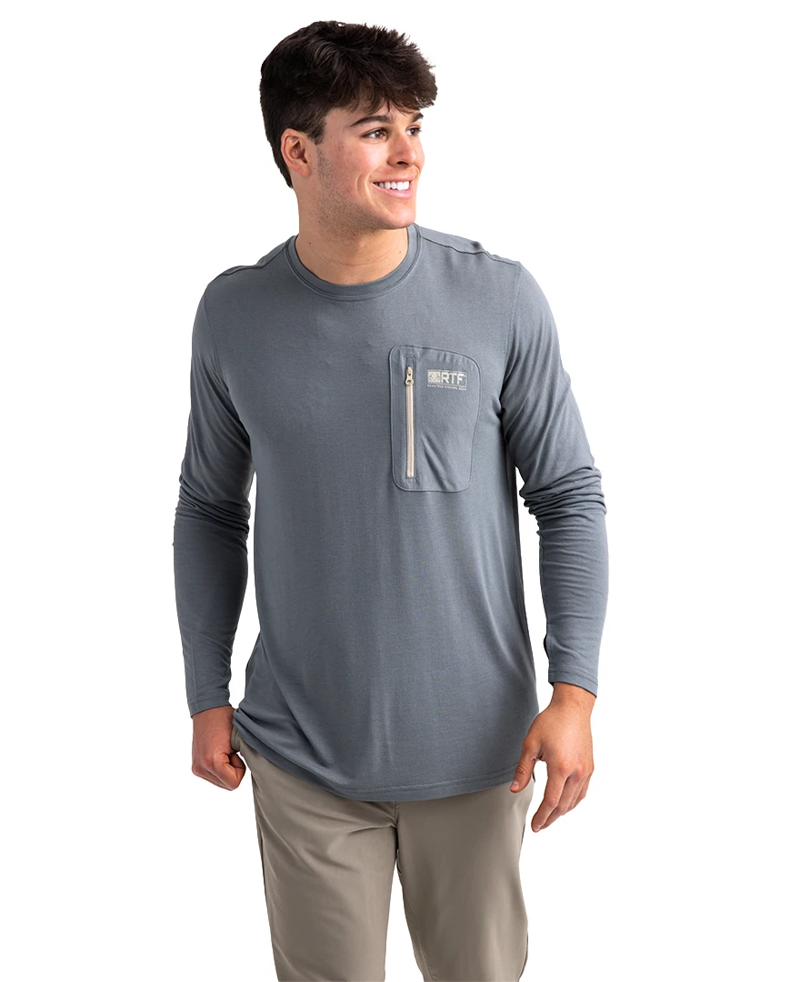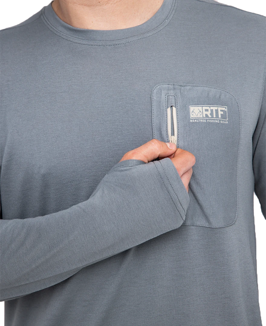 The left chest features a convenient zippered pocket for storing small items, while the screen-printed Realtree logo on the pocket adds a touch of style. The loose cut of the shirt allows for ease of movement, making it perfect for hunting, fishing, hiking, or anything outdoors.
