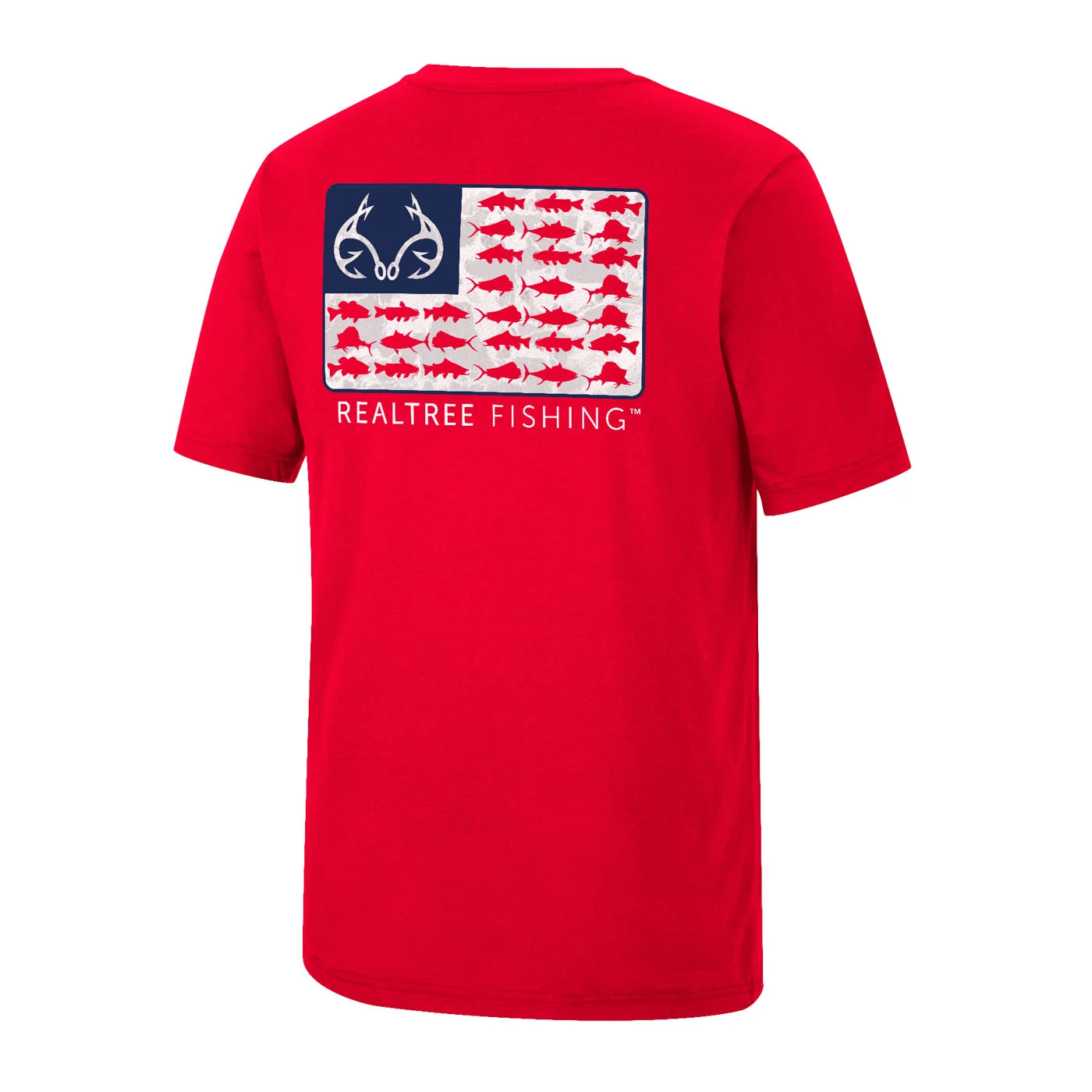 - Realtree Hook Logo with Fish Flag on Back of Shirt