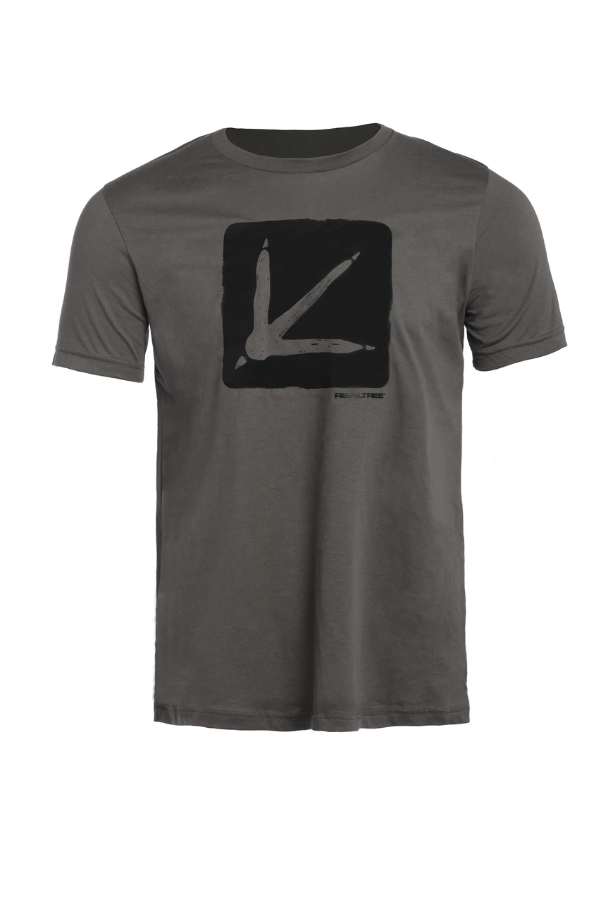 - Hand Drawn Turkey Track logo with Realtree underneath on Center Chest