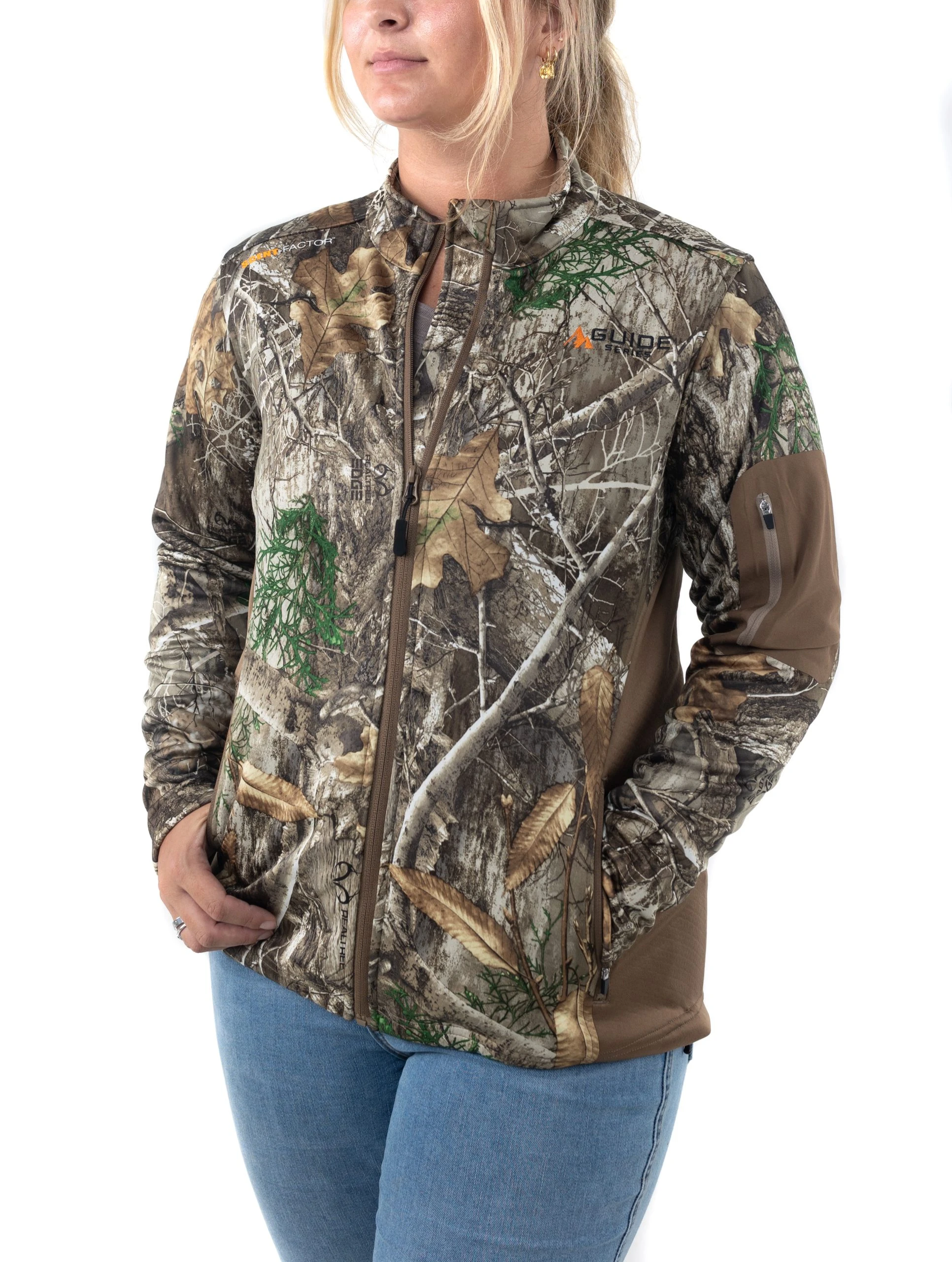 The Women’s Guide Series Jacket is the ultimate mid-weight hunting jacket. Active 2-Ply Fabric with Patterned Fleece Interior is extremely quiet, allowing you to stay undetected even while drawing a bow. Scent-Factorâ„¢ Scent Inhibitor Technology features a built-in scent reducing technology to inhibit the growth of odor-causing bacteria. Rain-Factorâ„¢ Water Repellent Technology treatment repels water from the surface of the fabric to help you stay dry from dew or mist. The high standing collar with zipper guard and adjustable toggle waist help lock out the breeze. Zippered arm and hand pockets provide ample storage for whatever you bring without the worry of it falling out.