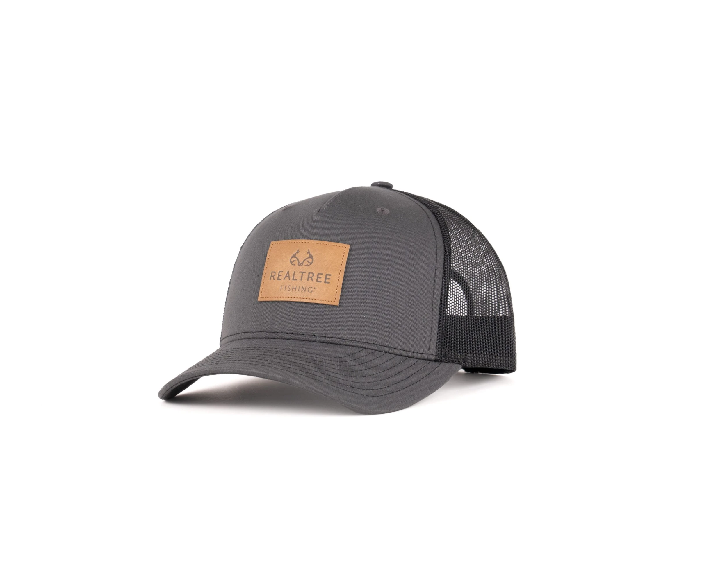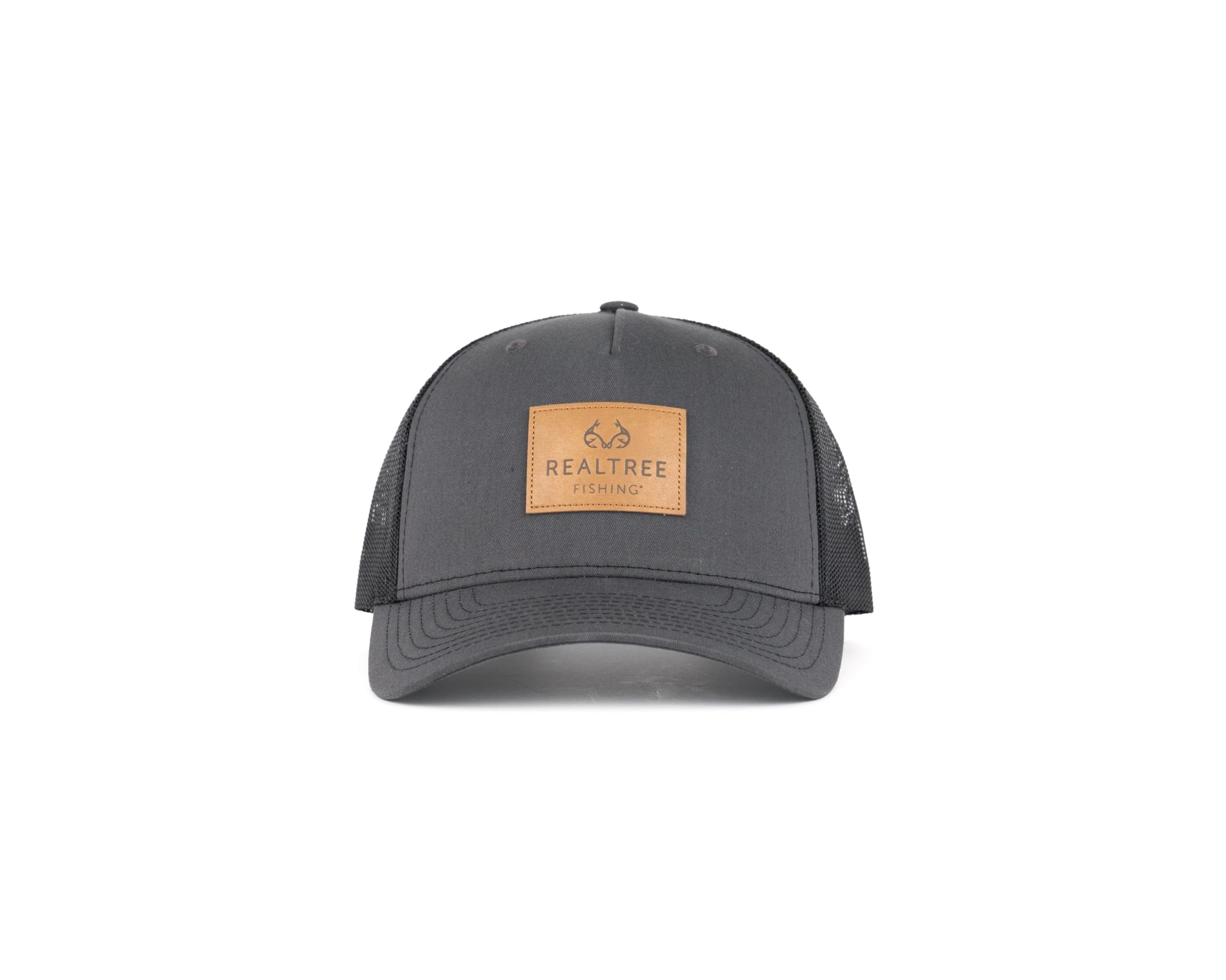 - Gray Front with Leather Patch in Center – Realtree Fishing with Hook logo