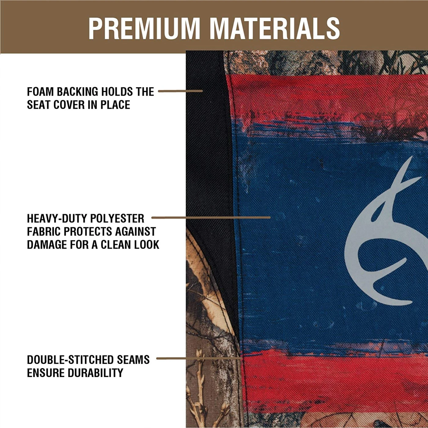 - PREMIUM MATERIALS | Premium materials deliver the most bang for your buck in this hunting inspired low back seat cover. Heavy-duty polyester fabric is abrasion and water resistant for a clean look. Foam backing ensures that the cover stays in place.