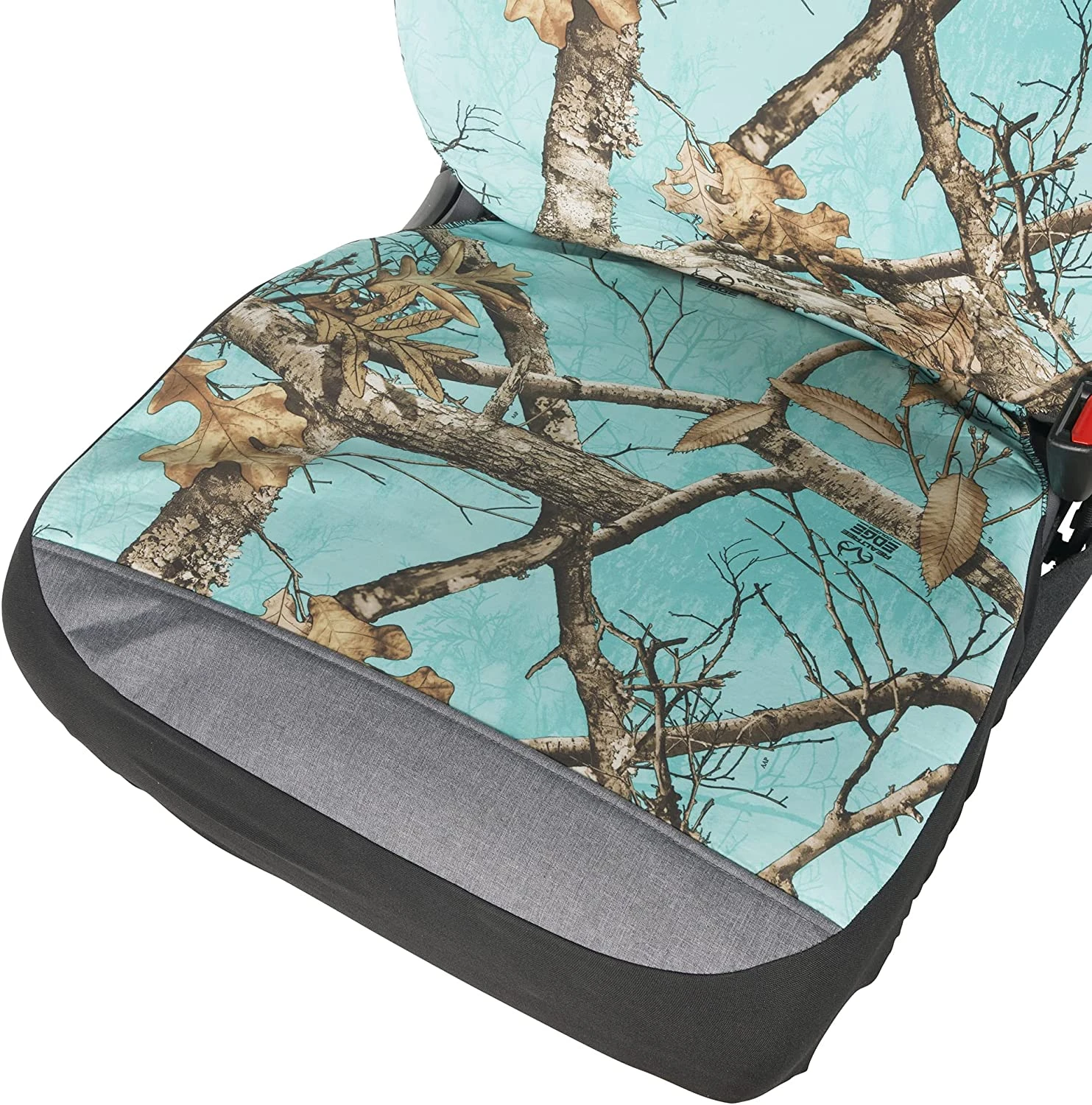 Protect your seats and show up with a dose of camouflage style with the Realtree Edge Mint Low-Back Camouflage Seat Cover. Made of heavy-duty polyester, this dirt and water resistant cover provides a clean look for your truck or SUV and protects the seat’s finish. Designed to fit the contours of most OEM vehicle seats, this convenient design allows access to built-in seat pockets, is compatible with most side seat airbags, and features a screen printed Realtree logo in the center—perfect for the avid outdoors man. Sold individually.