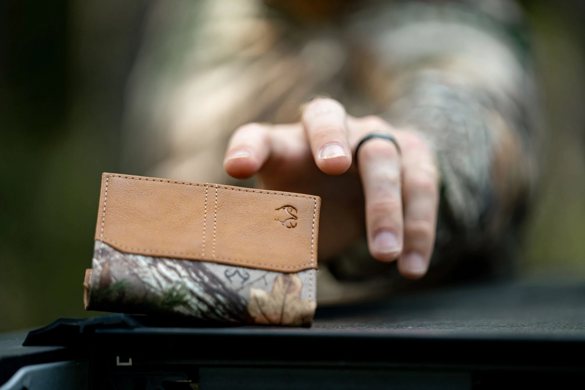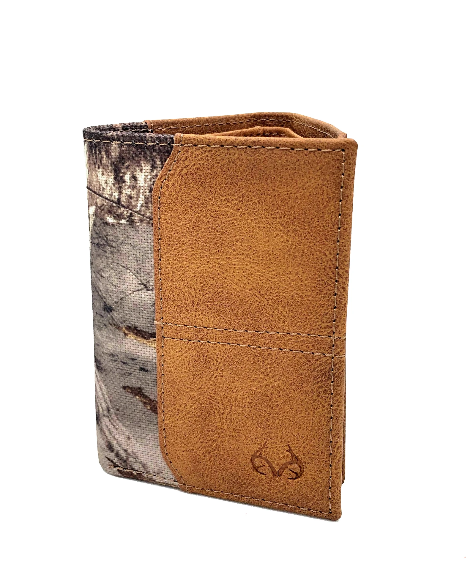 When you need a new wallet, get the Realtree Burnished Tan Trifold Wallet with EDGE Camouflage and Embossed Antler Logo. This leather wallet features a clear ID window and plenty of credit card slots to fit all your stuff. Keep this Realtree camo wallet for yourself or gift it to someone special in your life.